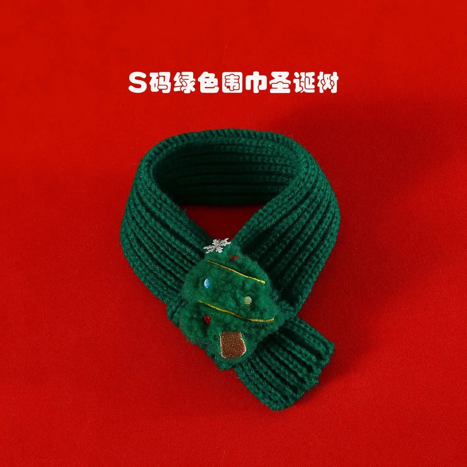 Solid colour wool knitted Christmas snow house tree old man plush warm pet cat dog scarf collar pet decorations pet supplies